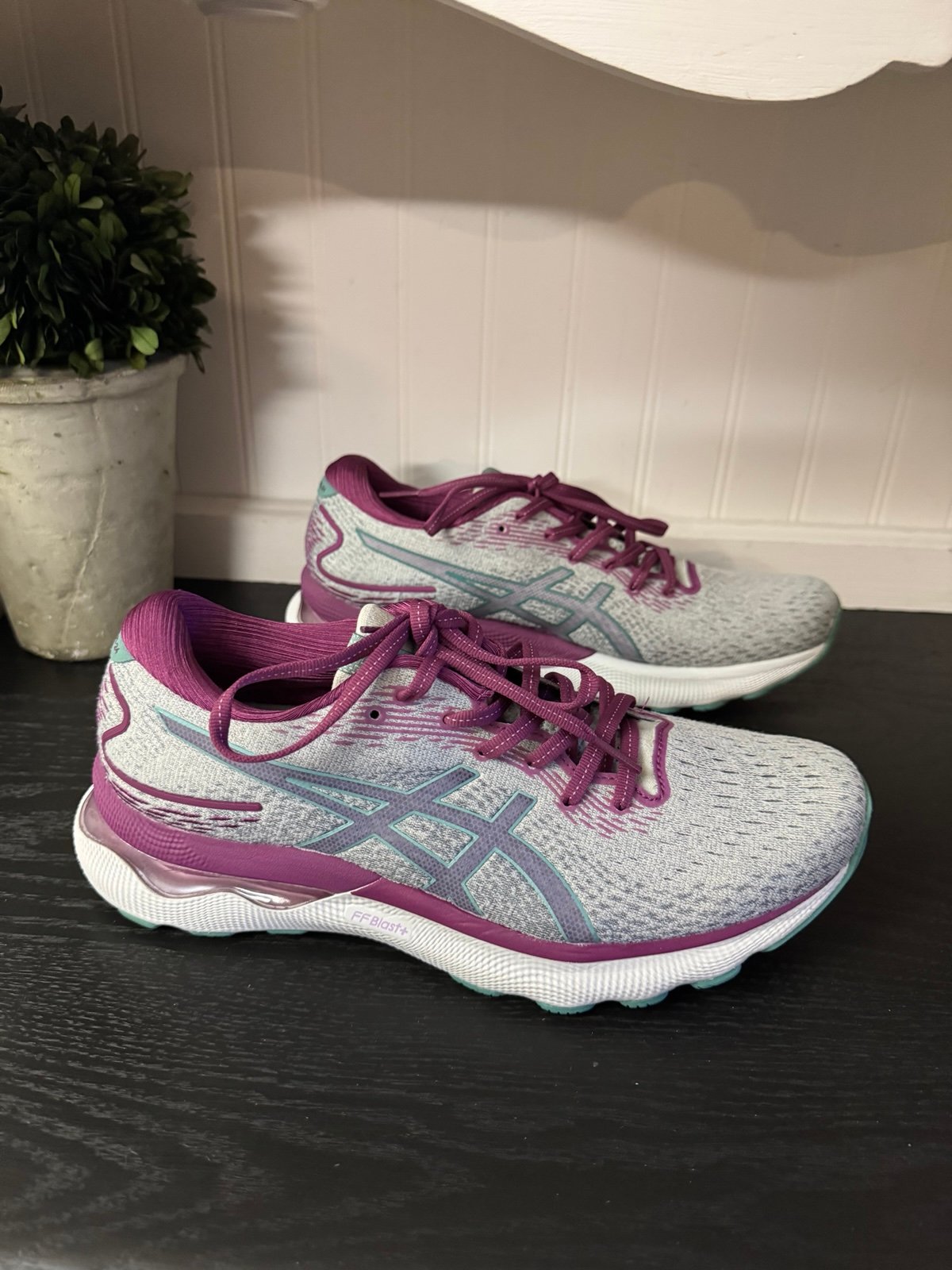 ASICS Gel-Nimbus 24 running shoes in the Orchid/Soft Sky colorway women’s