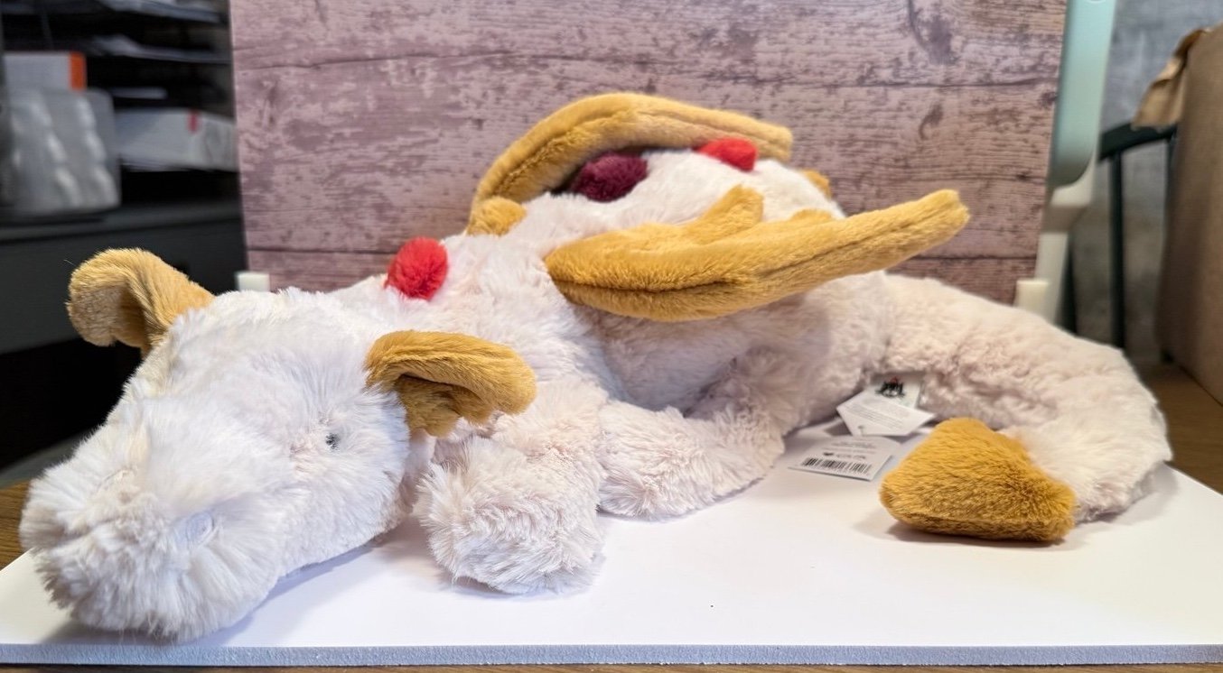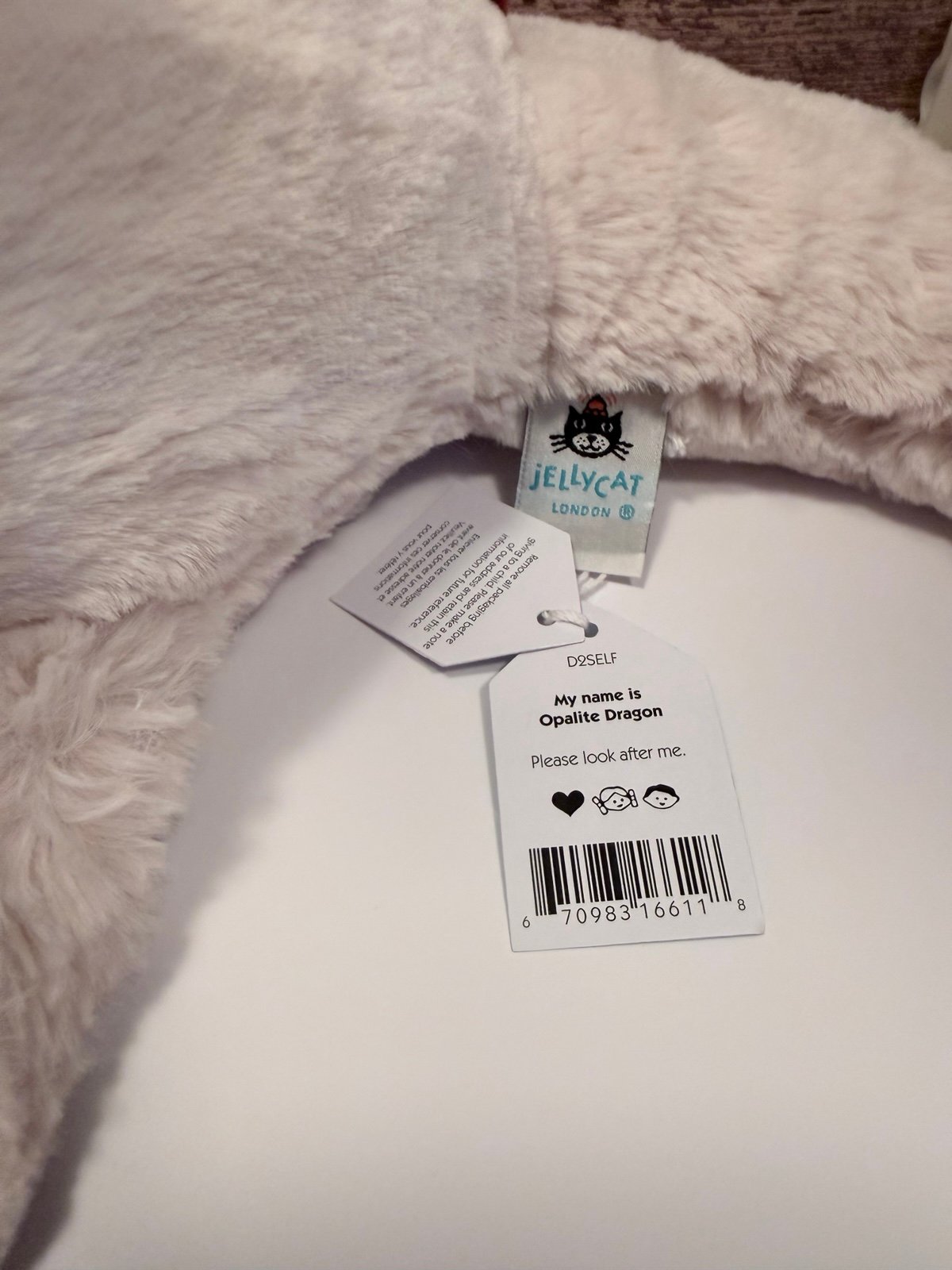 Jellycat Opalite Dragon – Selfridges Exclusive release and a true treasure for collectors. This magical dragon features ultra-soft ivory fur, golden wings, and shimmering red spine accents. Crafted with signature Jellycat quality, it’s both whimsical and elegant — a standout piece in any plush collection.