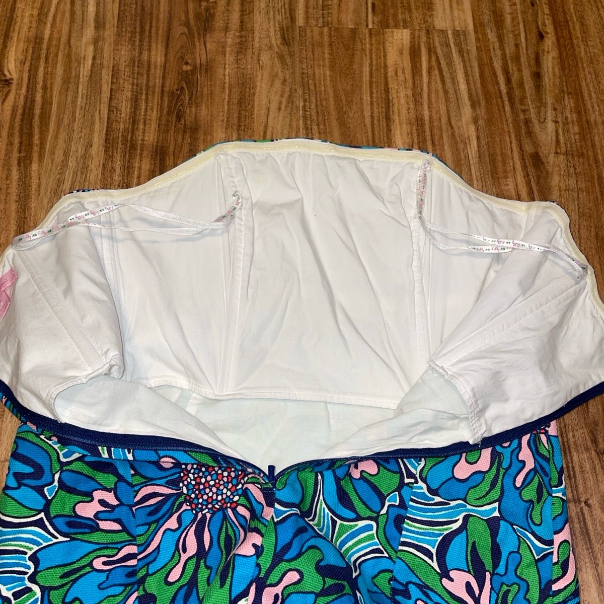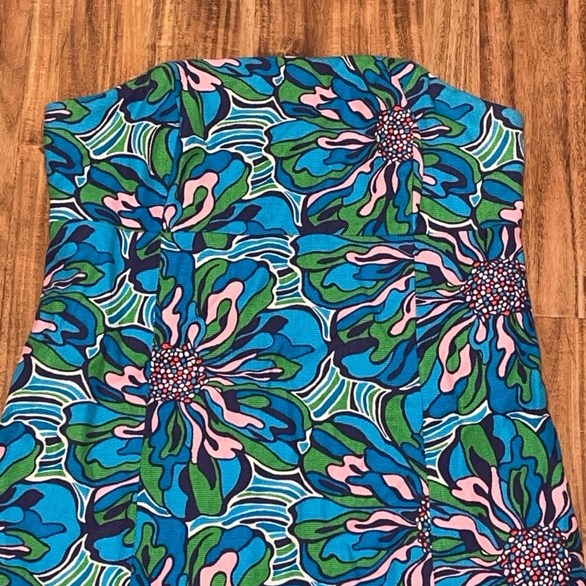 Lilly Pulitzer women’s 4 small dress Strapless Blue Green Floral Bowen vintage