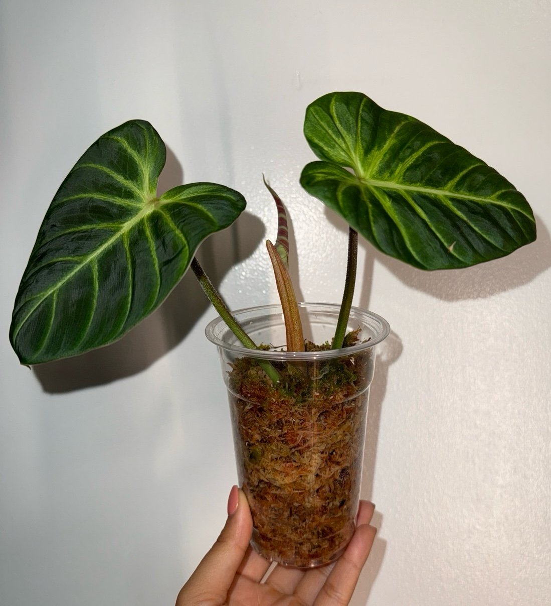 Philodendron Verrucosum Resplandeciente growing in moss.