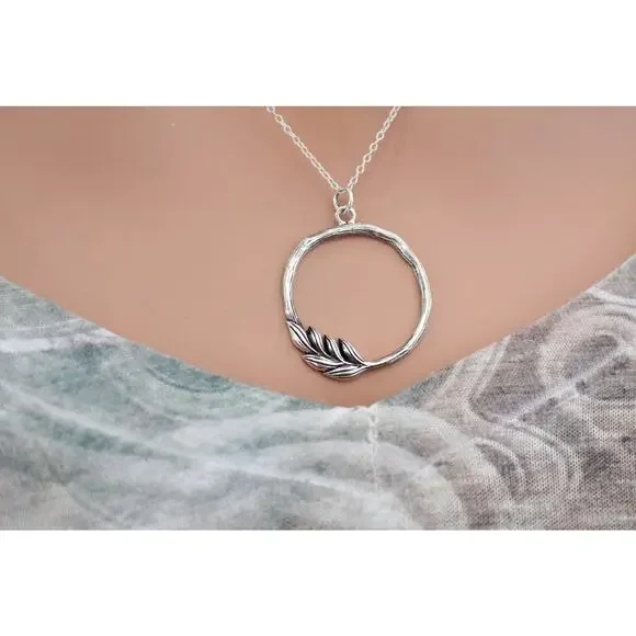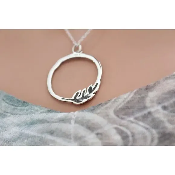 This is Sterling Silver Twig Circle Charm Necklace. Both the charm and the necklace are Sterling Silver. Please look at the measurements of the charms before ordering. Photos can sometimes make charms appear larger or smaller than they actually are.Measurement of Charm in mm:Height: 33 Width: 25 Thickness: 2This charm comes on an 18" chain unless otherwise requested.